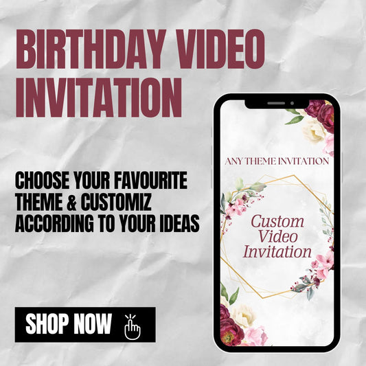Are you looking to craft an online video invitations but unsure of where to begin? Explore our selection of party video invitation templates for a hassle-free experience. With just a few clicks, fashion a polished invitation suitable for any occasion. Take your pick from a range of themes and designs, or tailor your own template effortlessly using our user-friendly tools. Our personalized video invitation templates enable you to incorporate photos, text, and even a video clip, allowing you to design a unique video invites for birthday, Wedding and Baby Showerm quinceanera and more that will undoubtedly spark excitement among your guests.