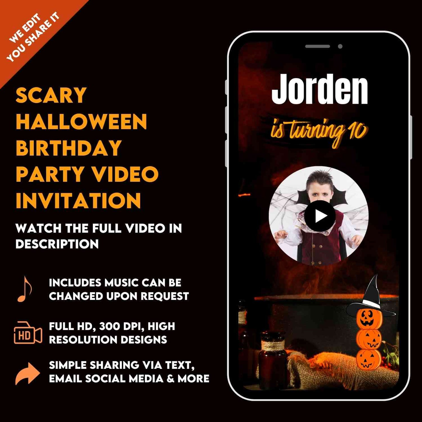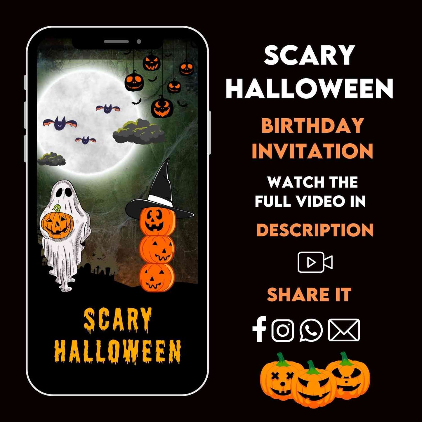 Animated Scary Halloween Birthday Video Invitation | Personalized Halloween Party Invite