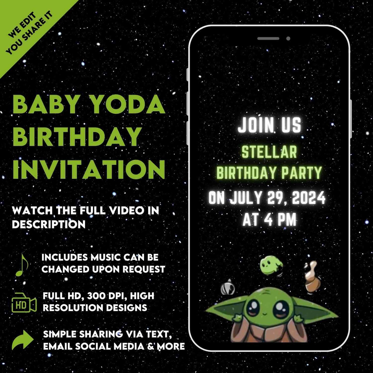 Baby Yoda Birthday Video Invitation | Custom Birthday Party Video Invite
