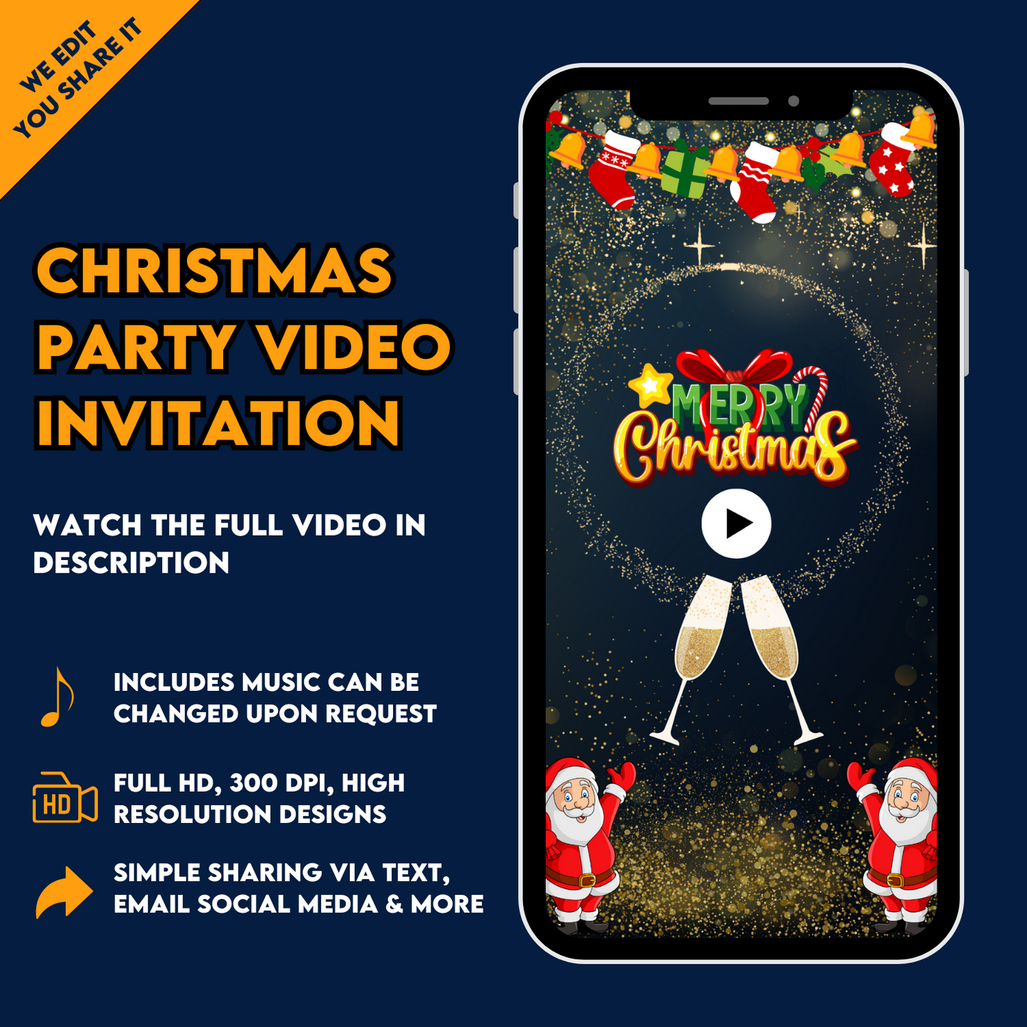 Create a festive celebration with our Christmas Party Invitation Video Template, a fully editable and instant download animated holiday invite designed for easy mobile sharing. Perfect for Christmas gatherings, office events, and family celebrations.