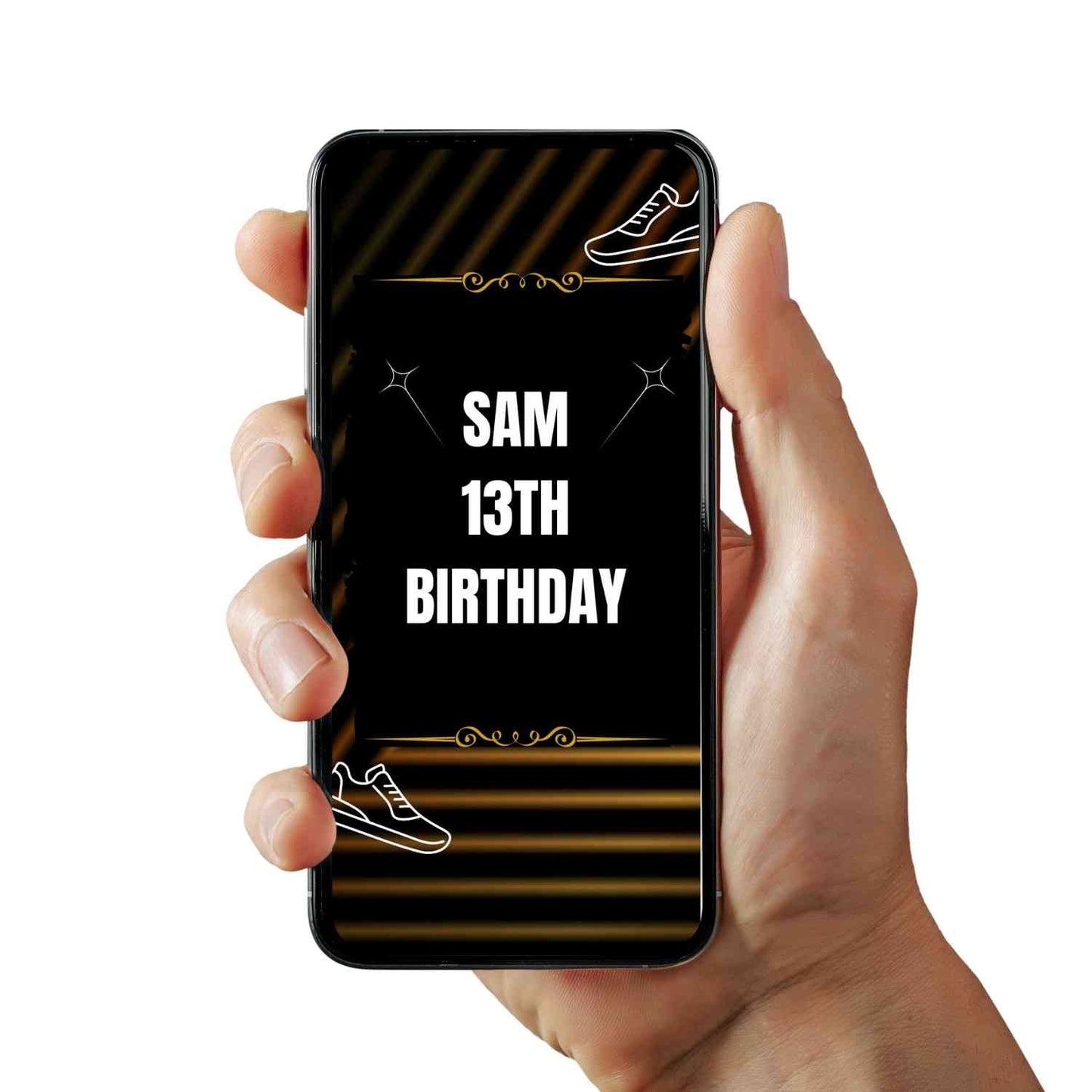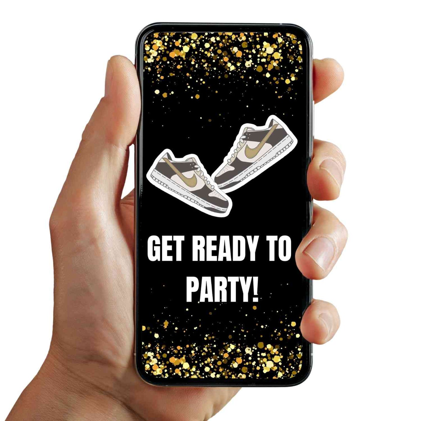Invite your guests with our Glamorous Gold Sneaker Ball Birthday Video Invitation.