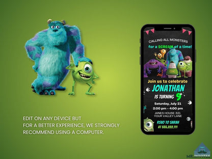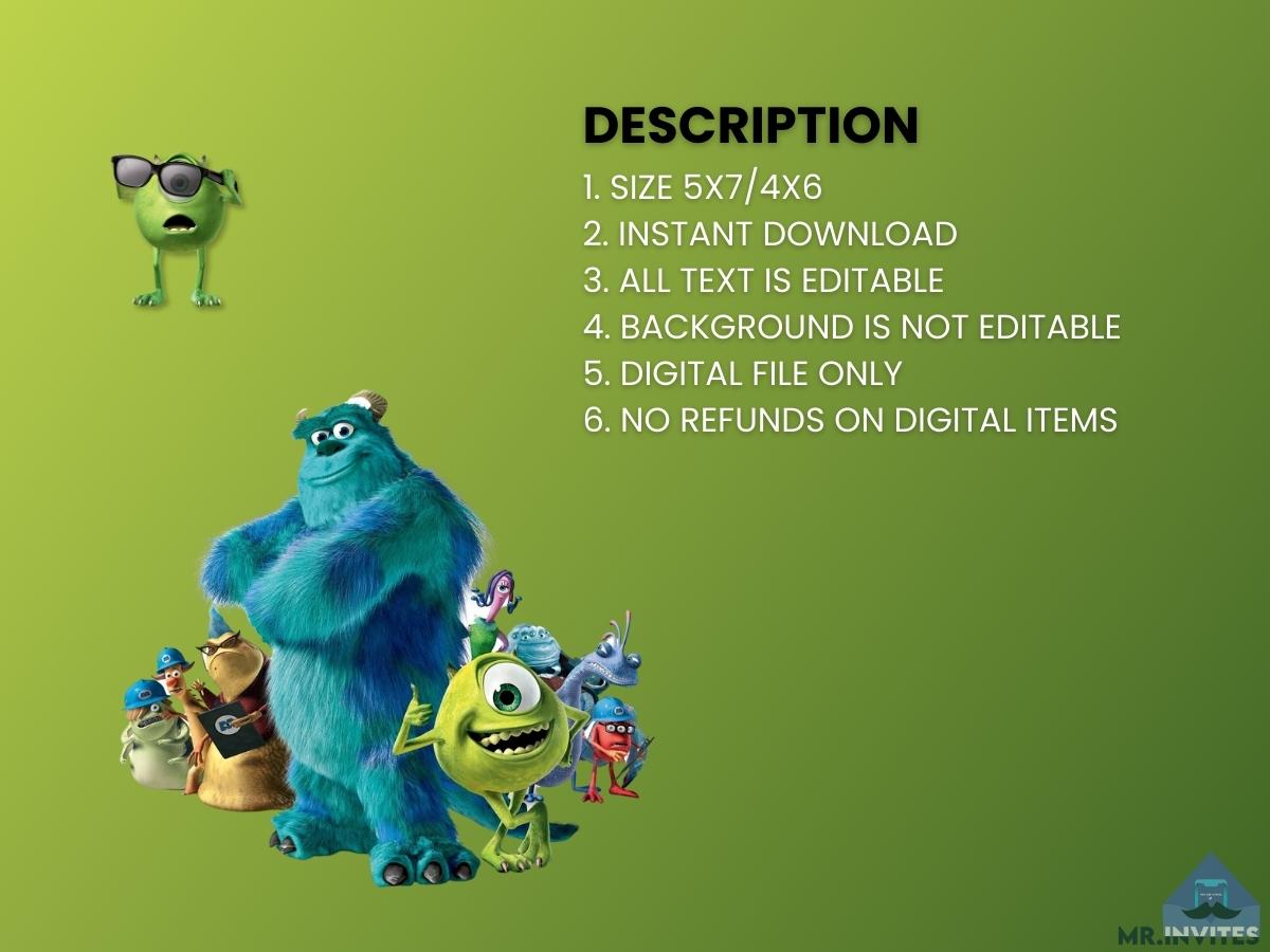 Monsters Inc Digital Birthday Invitation Template | Personalized and Fun