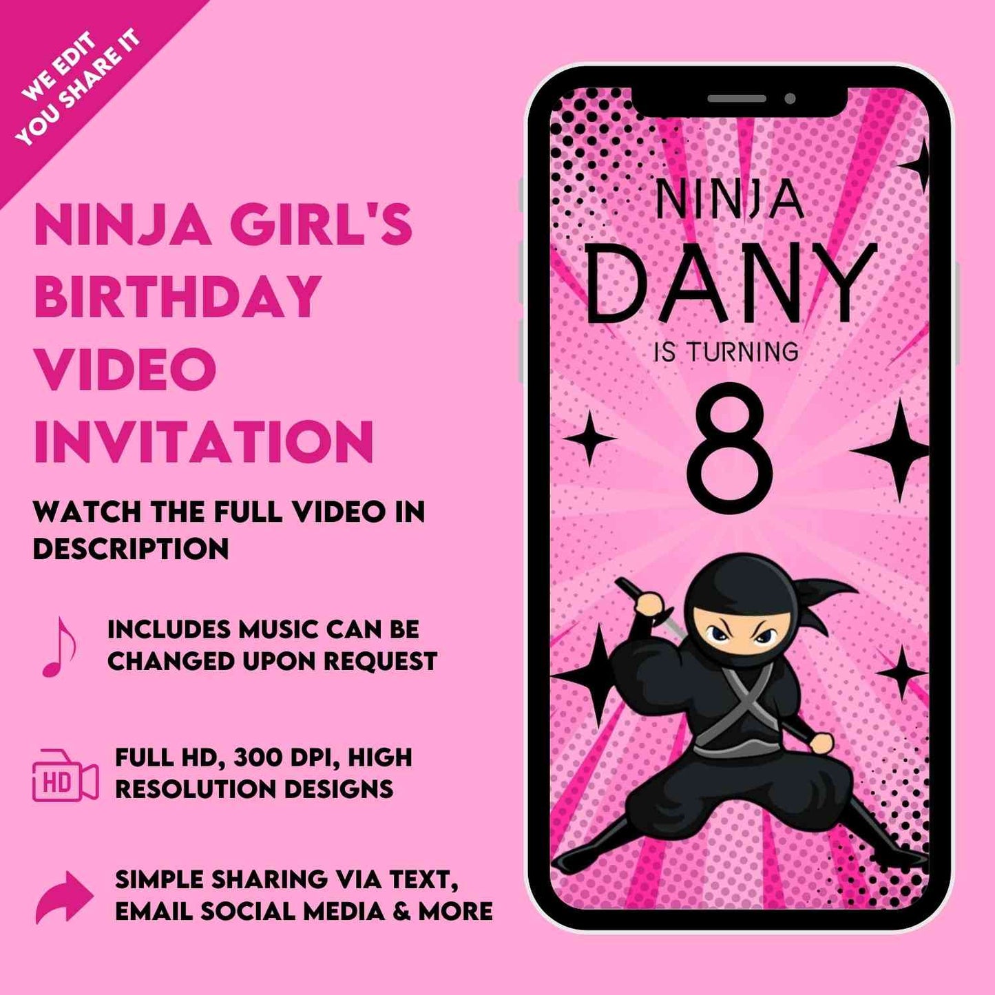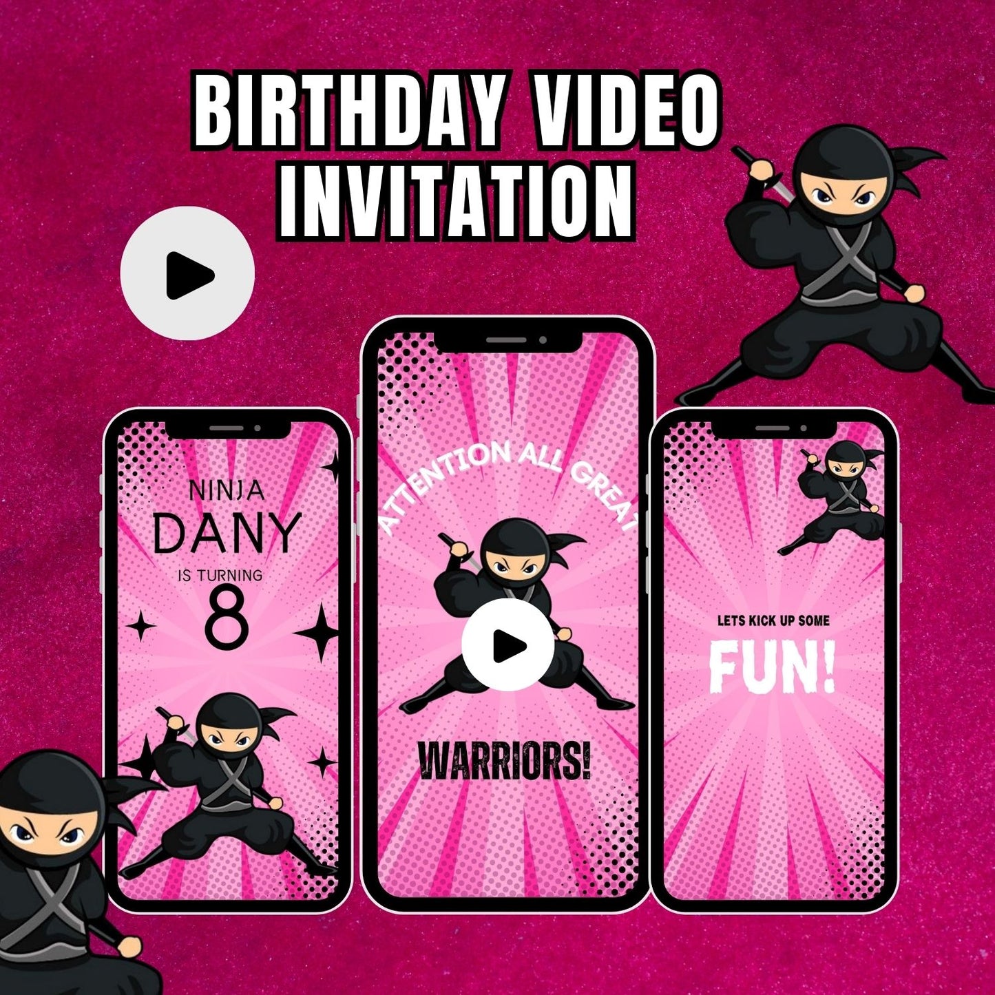 Pink-themed Party Invite: Ninja Girl's Birthday Video Invitation