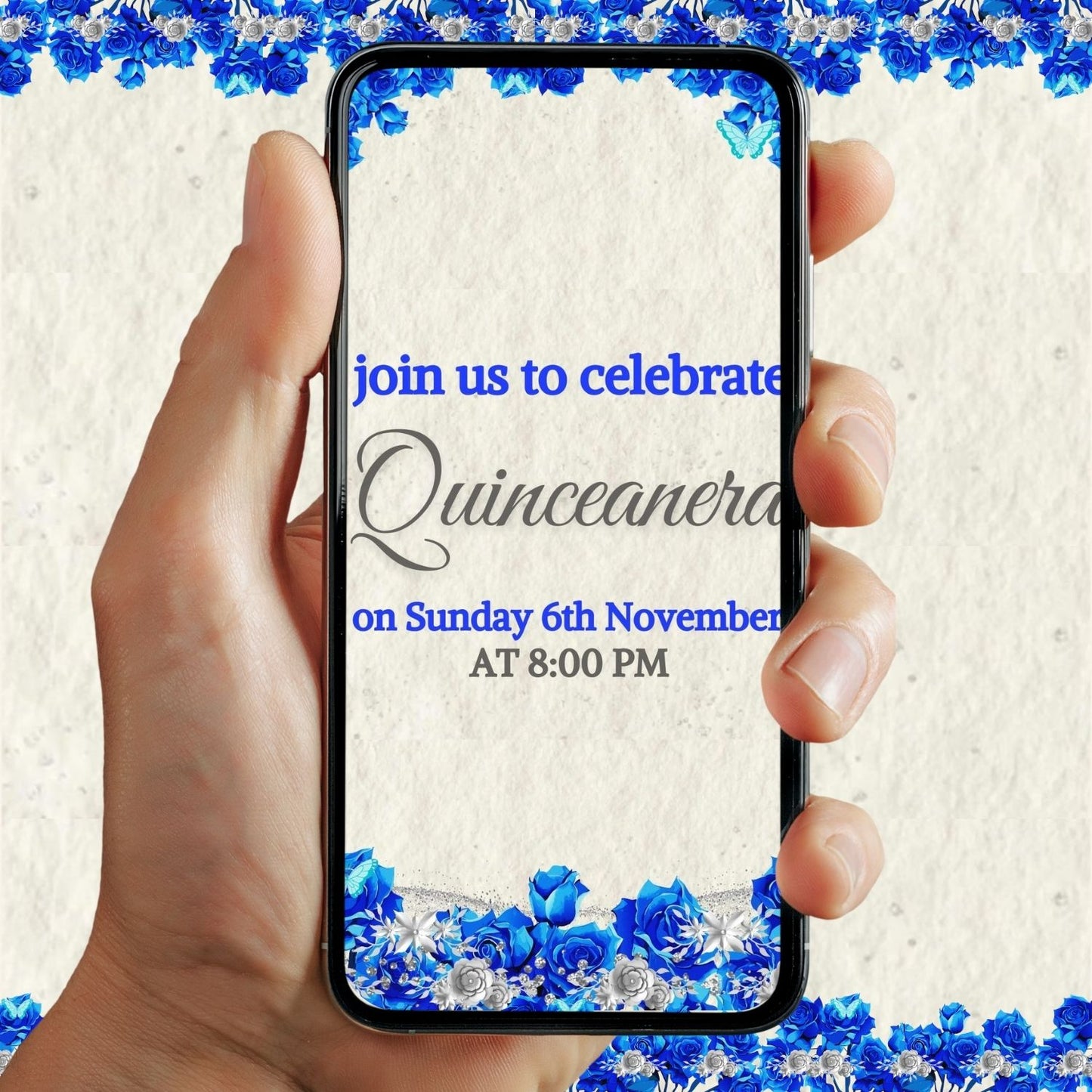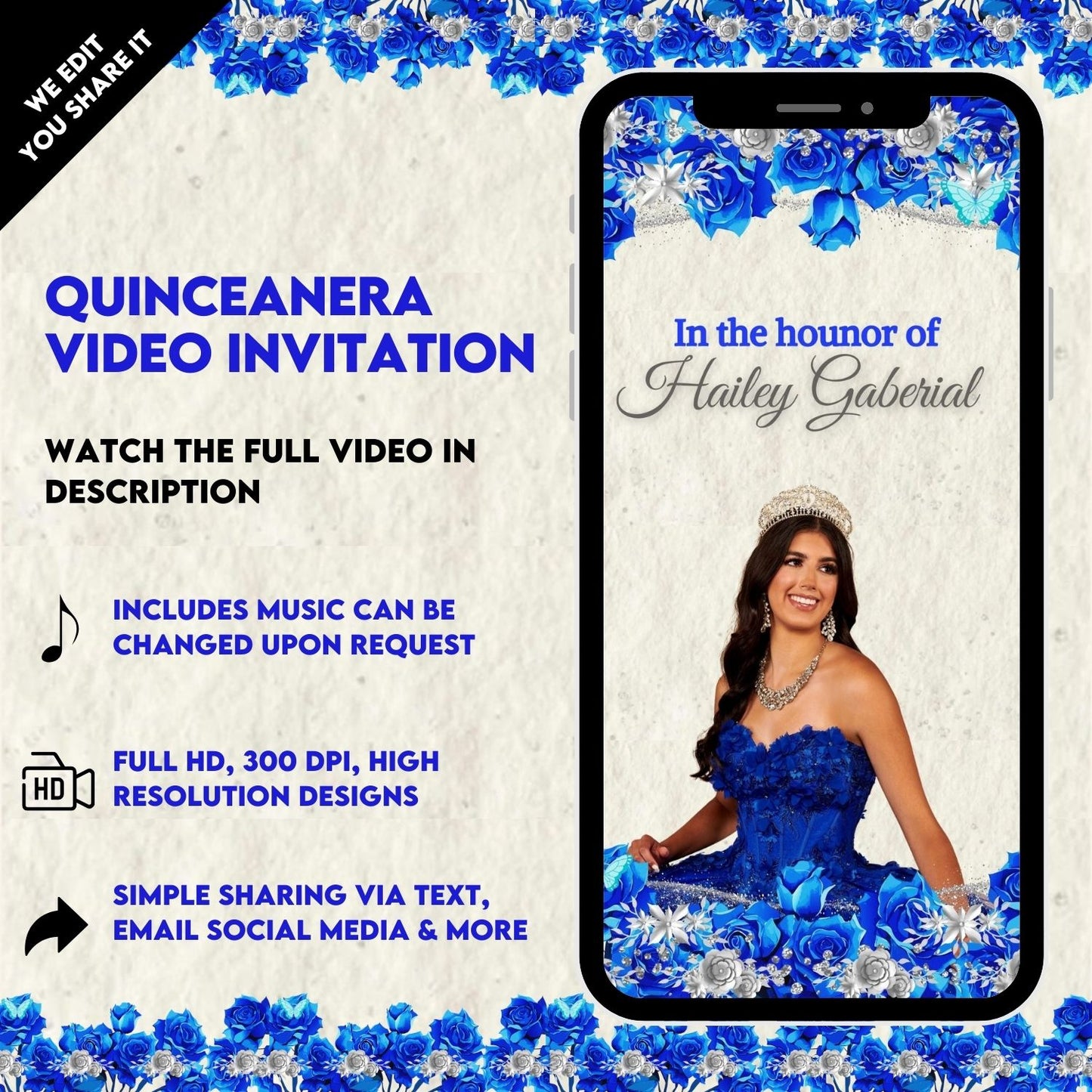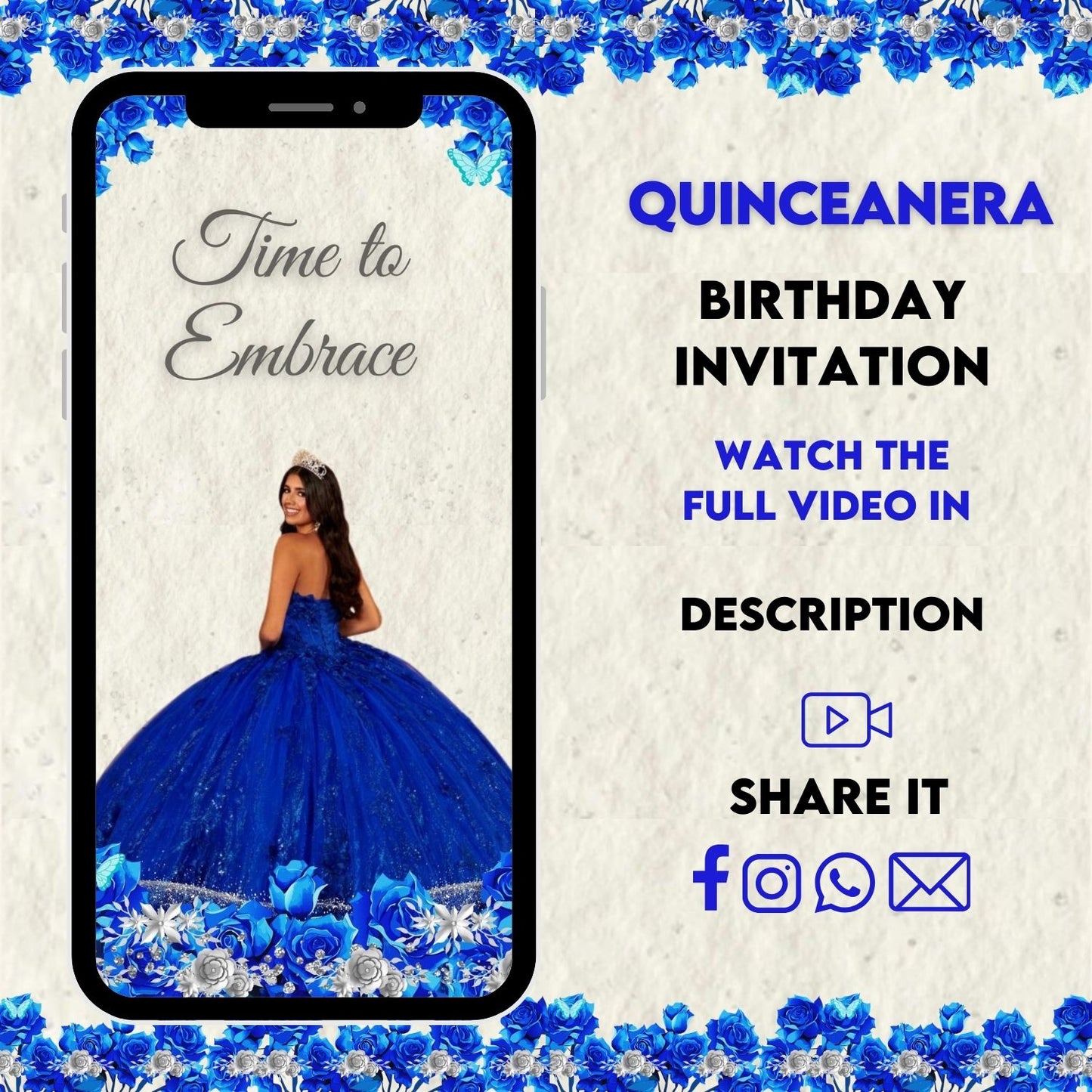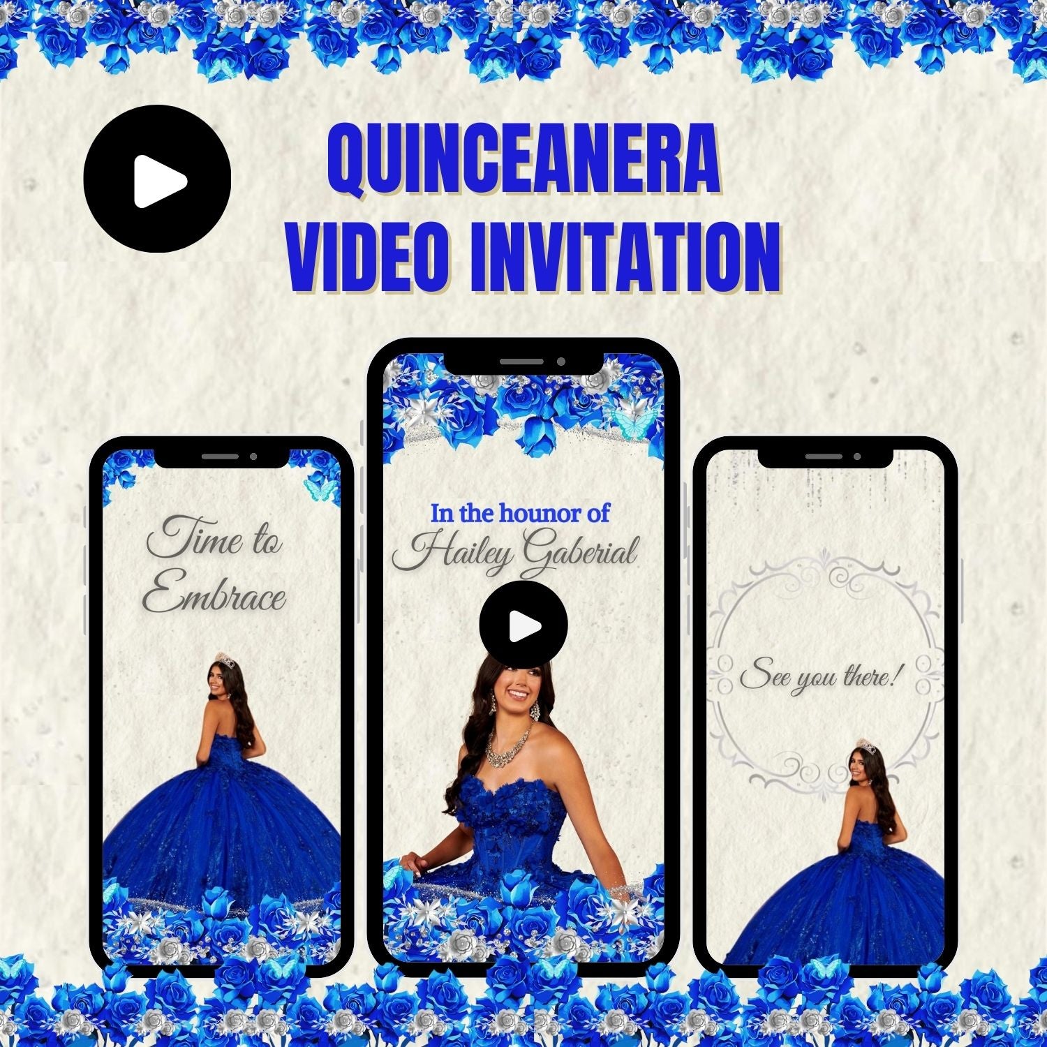 Transform your Quinceañera into a royal celebration with our stunning Royal Blue & Gold Animated Video Invitation!