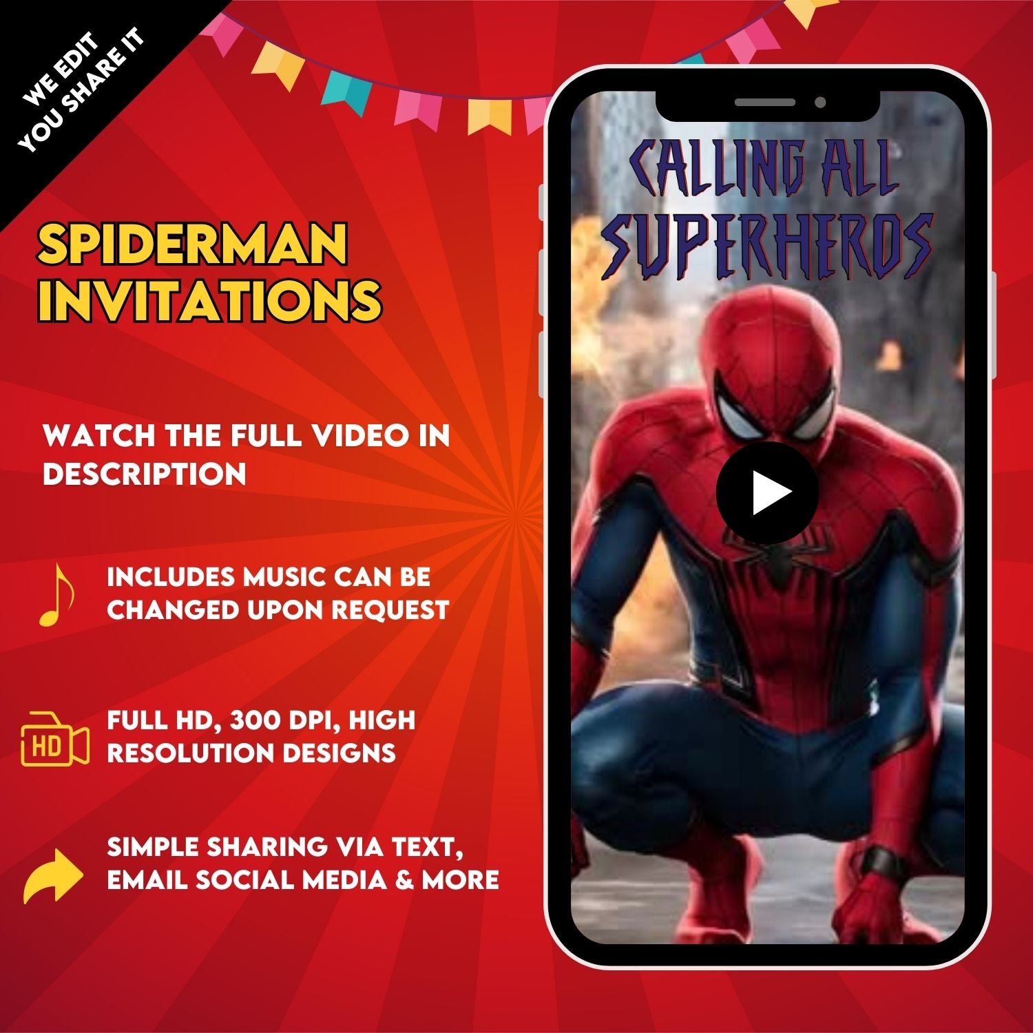 Ready to create a magical invitation for your birthday party? Click "Add to Cart" now and let your celebration with super hero Spiderman!