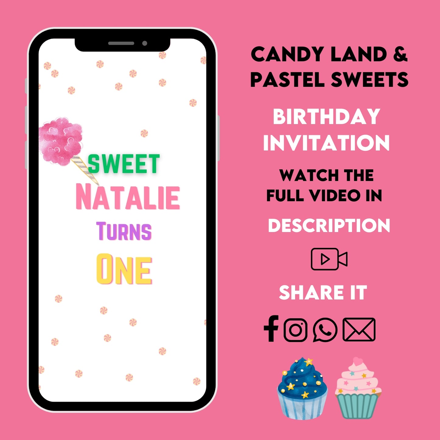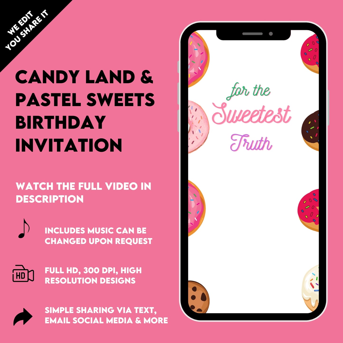 Sweets Birthday Video Invitation - Candy Land & Pastel Sweets