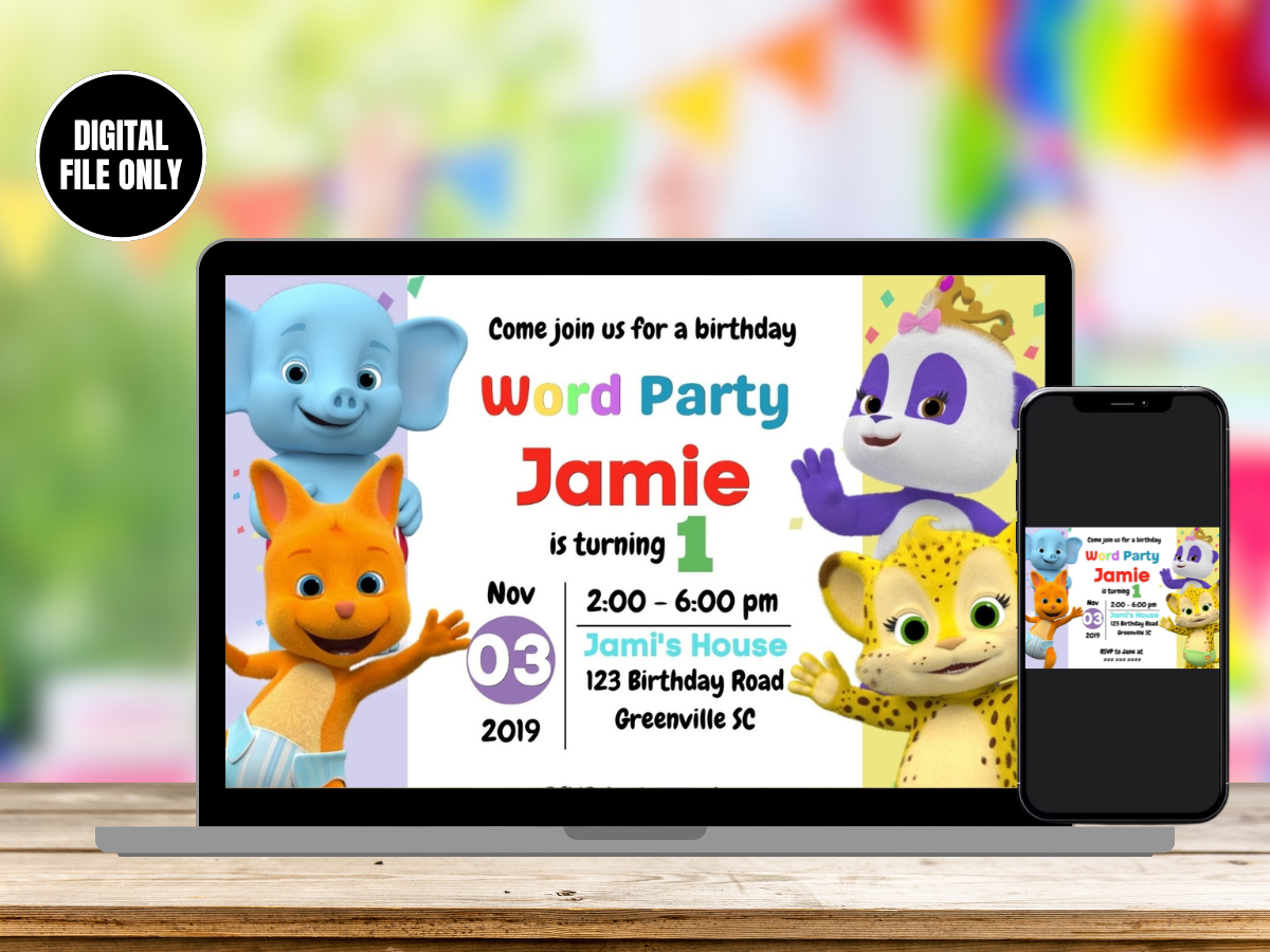 Spelling, Rhyming, Celebrating Words: Order the Digital Word Party Invitation Today!