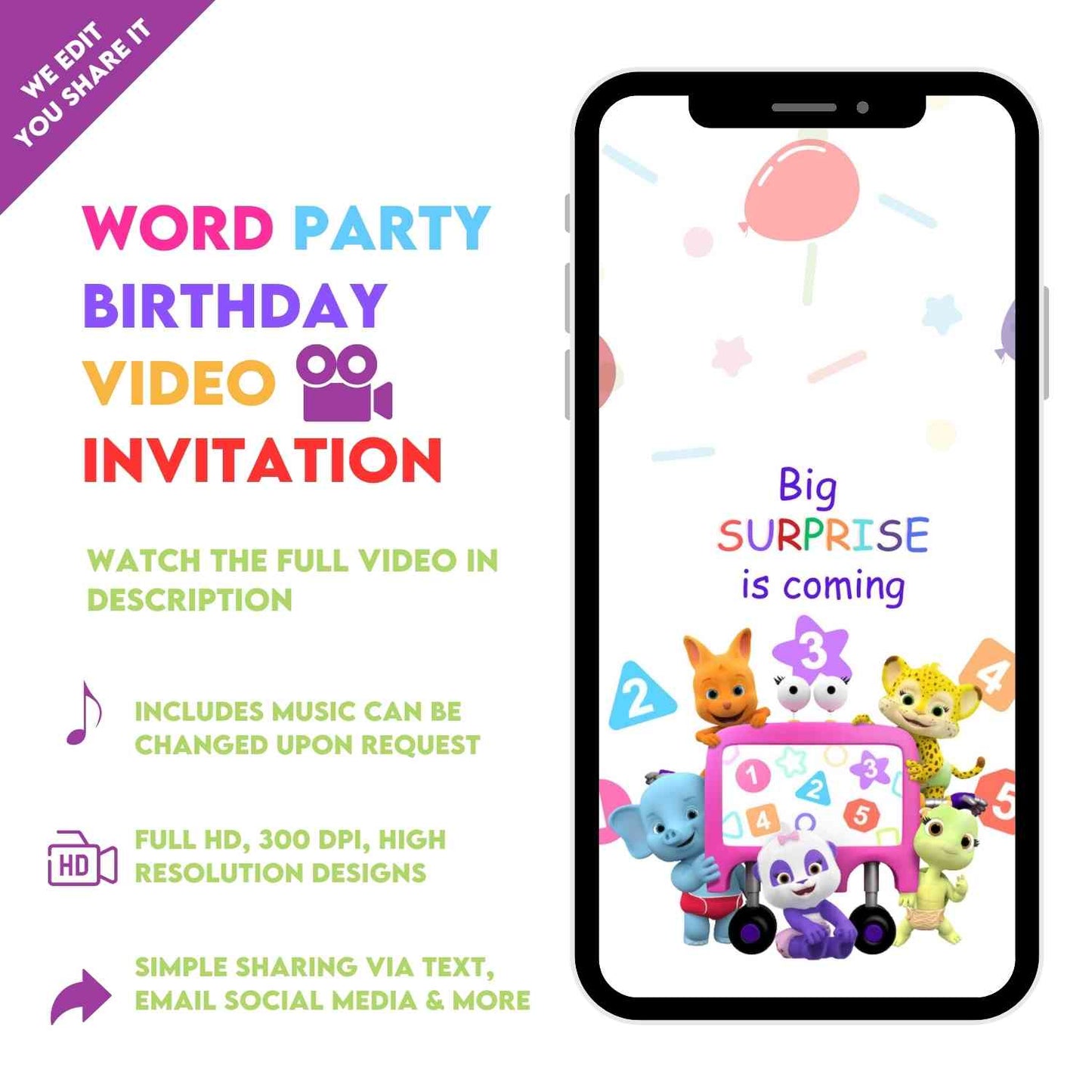 Join the Word Party for a Birthday Adventure like no other! Order your Word Party Birthday Video Invitation now, and let the celebration of words, laughter, and endless fun commence!